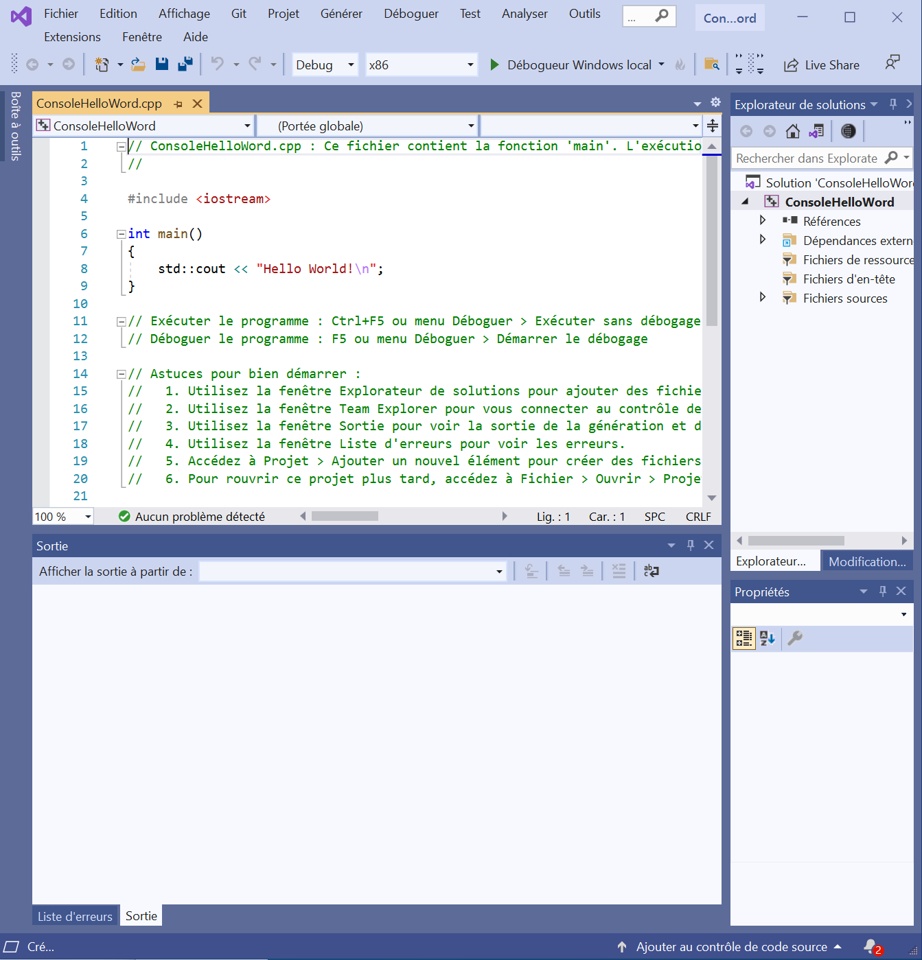Analyse du code Hello World!