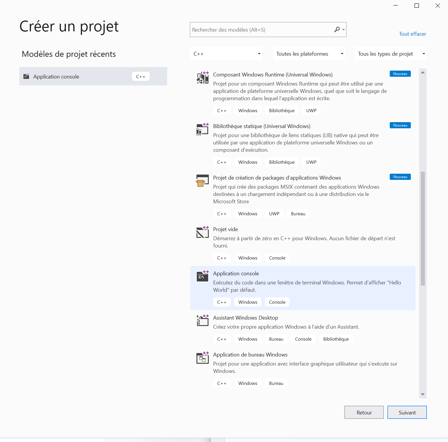 Il existe deux types de programmes: les programmes graphiques (GUI) et les programmes en console. Les programmes graphiques affichent des fenêtres interactives, comme Microsoft Word, tandis que les programmes en console affichent du texte en blanc sur fond noir et fonctionnent au clavier. Dans ce cours, nous allons créer des programmes en console car c’est plus simple pour les débutants. Le C++ est plus difficile à maitriser que les autres langages, c'est un langage qui demande beaucoup de rigueur. En revanche, ce langage permet de mieux comprendre les interactions avec l'électronique d'un ordinateur.