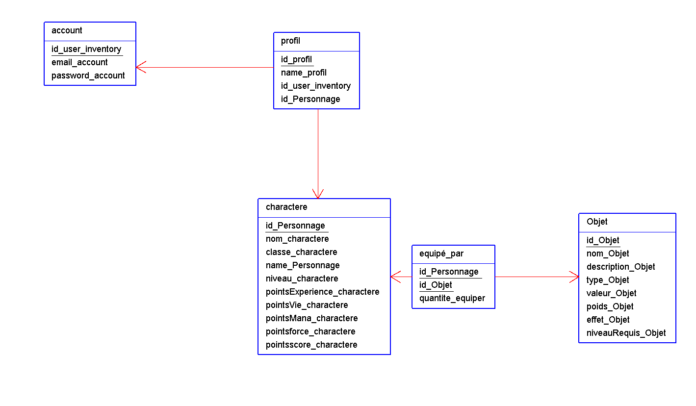 La classe Personnage représente un personnage dans un jeu. Elle contient des informations sur le personnage telles que son nom, sa classe, son niveau, ses points d’expérience, ses points de vie, ses points de mana, ses points de force et son score dans le jeu. La classe contient également un ensemble d’inventaires qui représentent les objets possédés par le personnage.