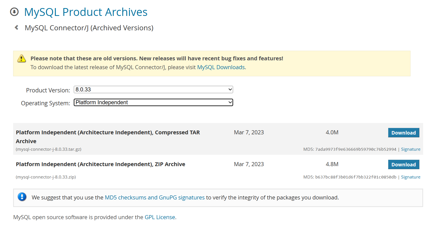 MySQL :: Download MySQL Connector/J (Archived Versions)