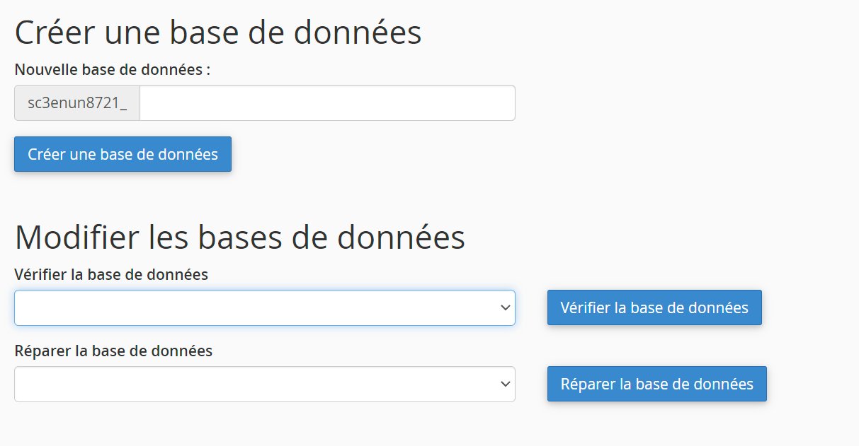 - Accès à phpMyAdmin : Depuis le cPanel, ouvrez phpMyAdmin.