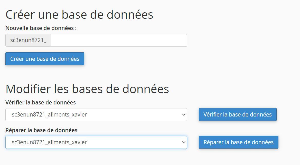 - Création de la Base de Données : Entrez le nom de votre base de données et cliquez sur "Créer une base de données".
