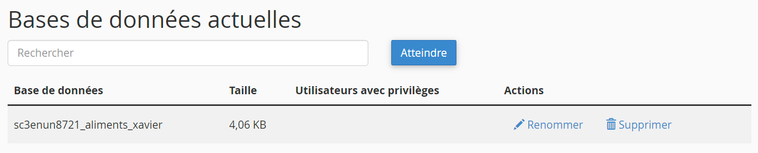 - Sélection de la Base de Données : Sélectionnez la base de données que vous avez créée précédemment dans la colonne de gauche.