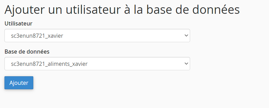 - Attribution des Privilèges : Ajoutez cet utilisateur à la base de données et attribuez-lui tous les privilèges nécessaires pour effectuer des opérations sur la base de données.