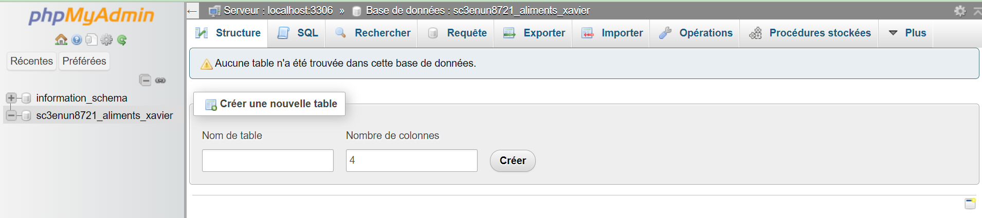 config.php) et mettez à jour les paramètres de connexion à la base de données (hostname,username,password,database) avec les valeurs correspondant à l'utilisateur et à la base de données MySQL que vous avez créés. - bdd: sc3enun8721_aliment_xavier