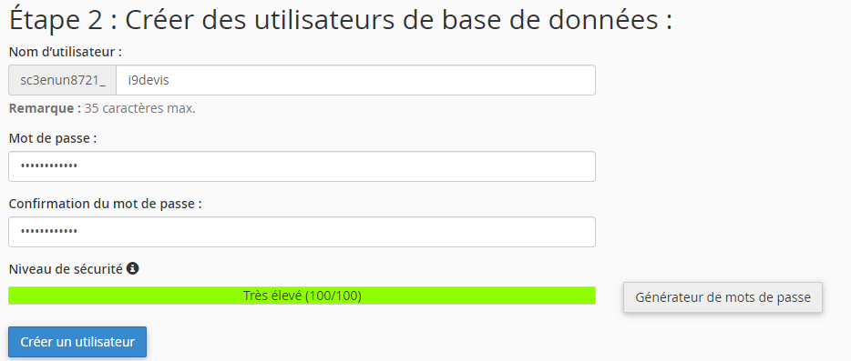 on peut donner le meme nom à la base et à l'utilisateur de la base.