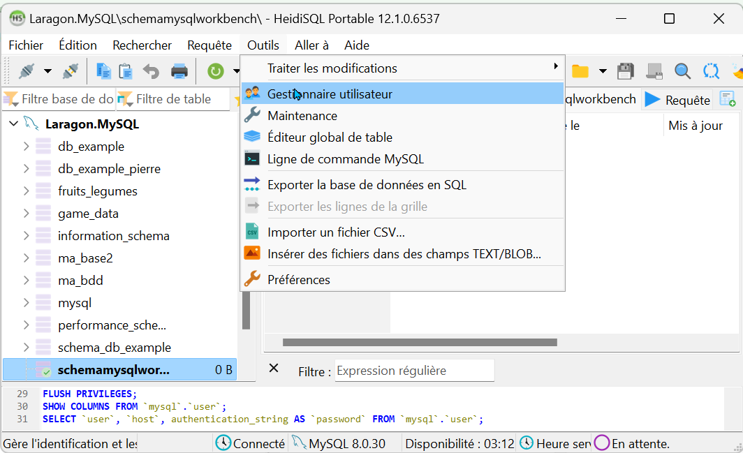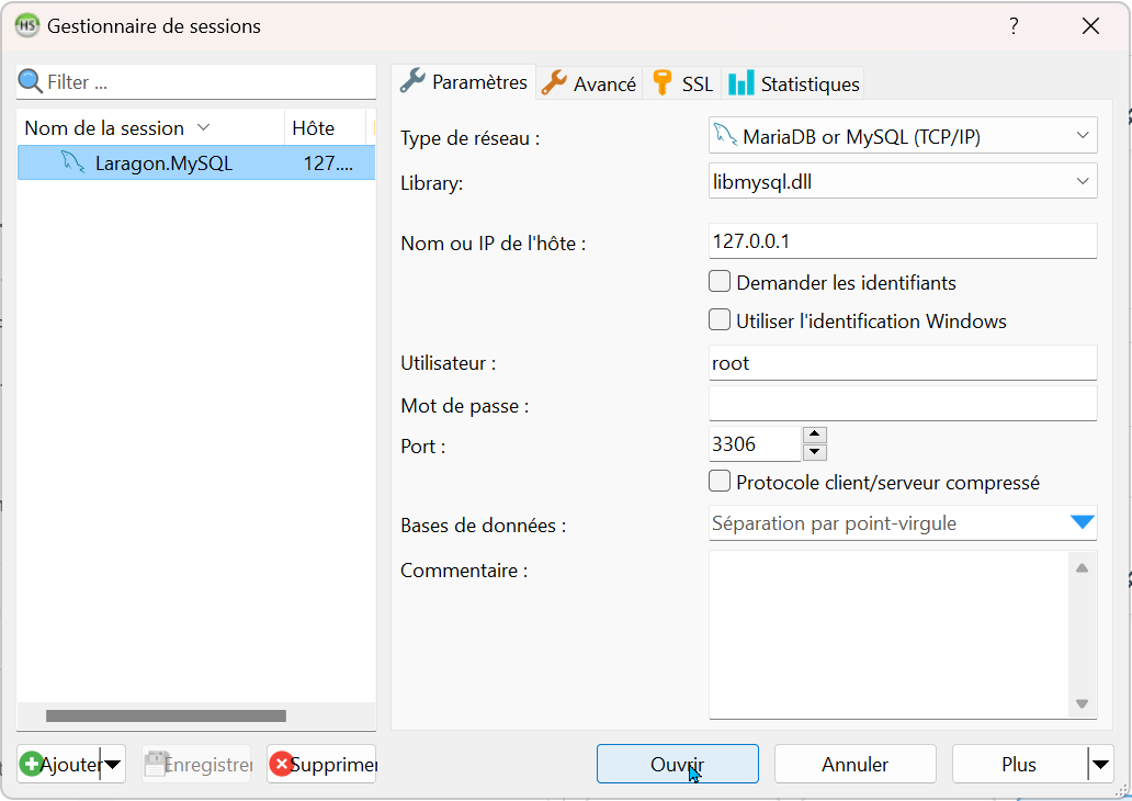 Ajouter un compte avec mot de passe avec laragon